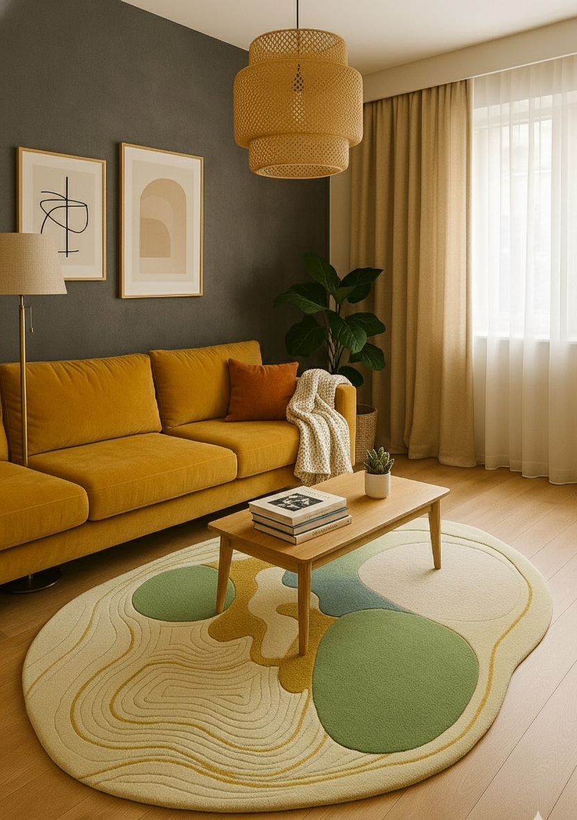 Elevate your home with a piece that blurs the line between furniture and art. Our Topographic Earth-Tone Rug features a unique, biomorphic silhouette that breaks away from traditional rectangular constraints, bringing a natural, fluid energy to your living room or bedroom.
