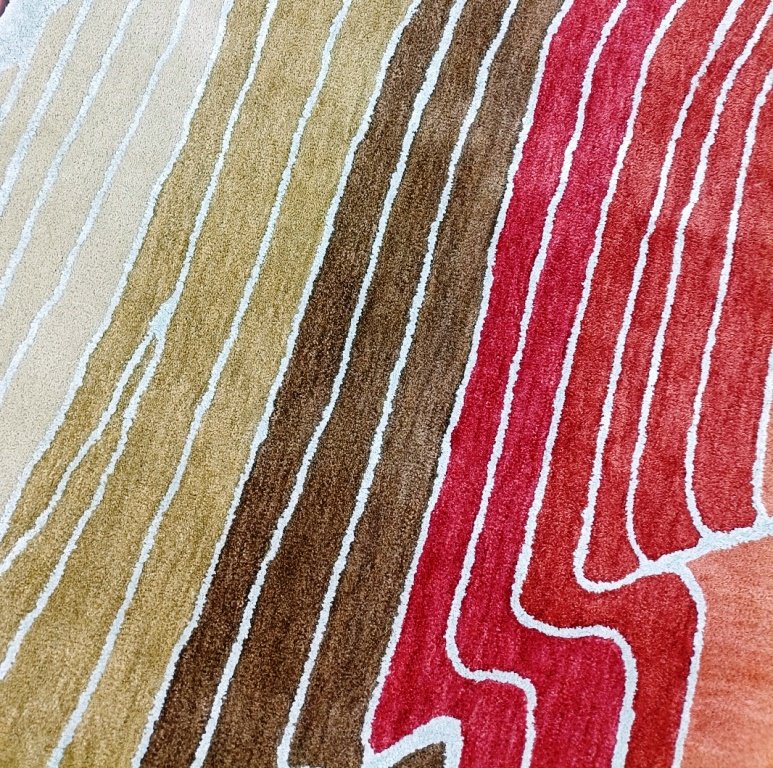 Crafted with high-quality wool, the Solaris rug showcases a sophisticated palette of muted terracotta, soft sage, sandy beige, and deep ochre. The rhythmic, wave-like linework creates a sense of movement and depth, making it the perfect companion for minimalist, Scandinavian, or Mid-Century Modern interiors.